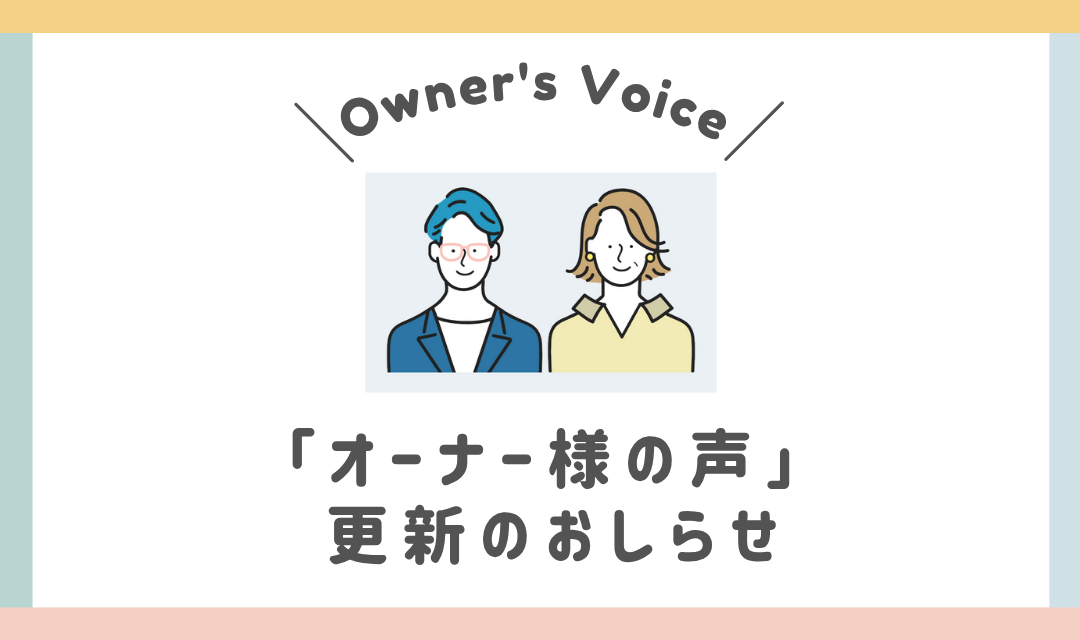 オーナー様から寄せられたコメントを紹介している「オーナー様の声」ページを更新しました。