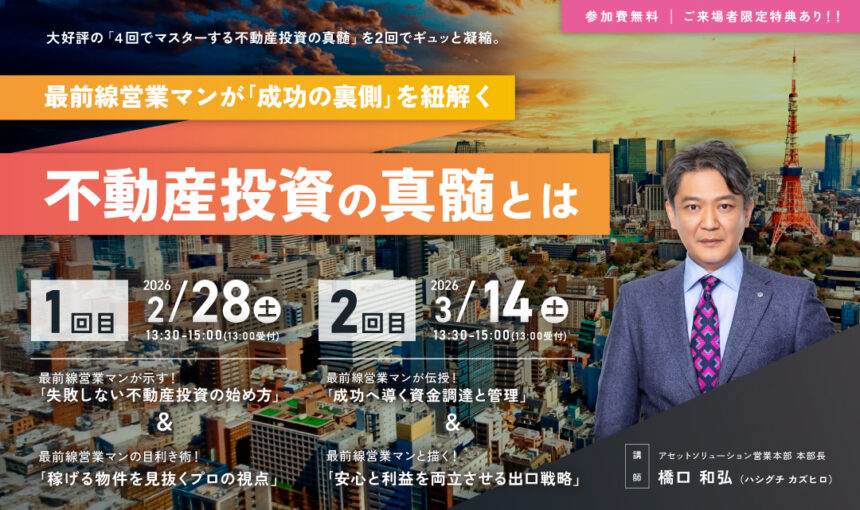 2026年1月24日(土)開催予定の特別セミナー 「4回でマスターする不動産投資の真髄」FINAL STEP につきまして、 ご好評につき、 […]